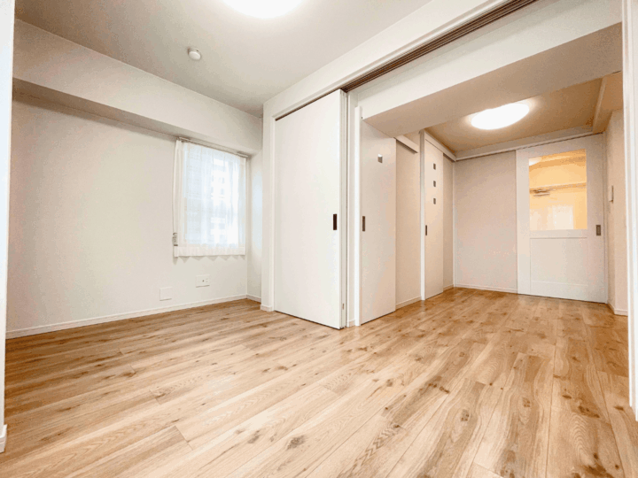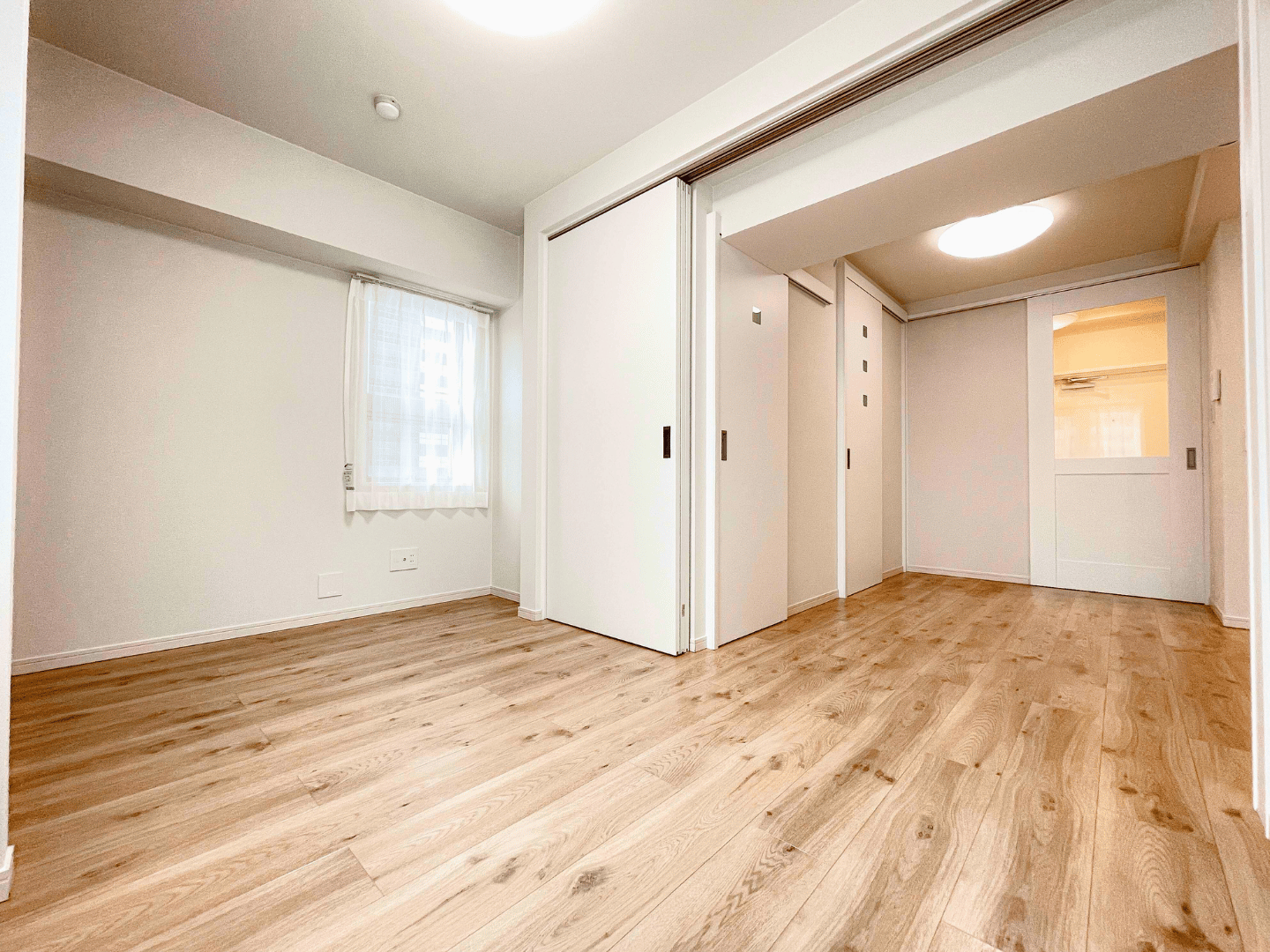 洋室の引き戸を開放すると約12帖のワンルームとしても利用可能