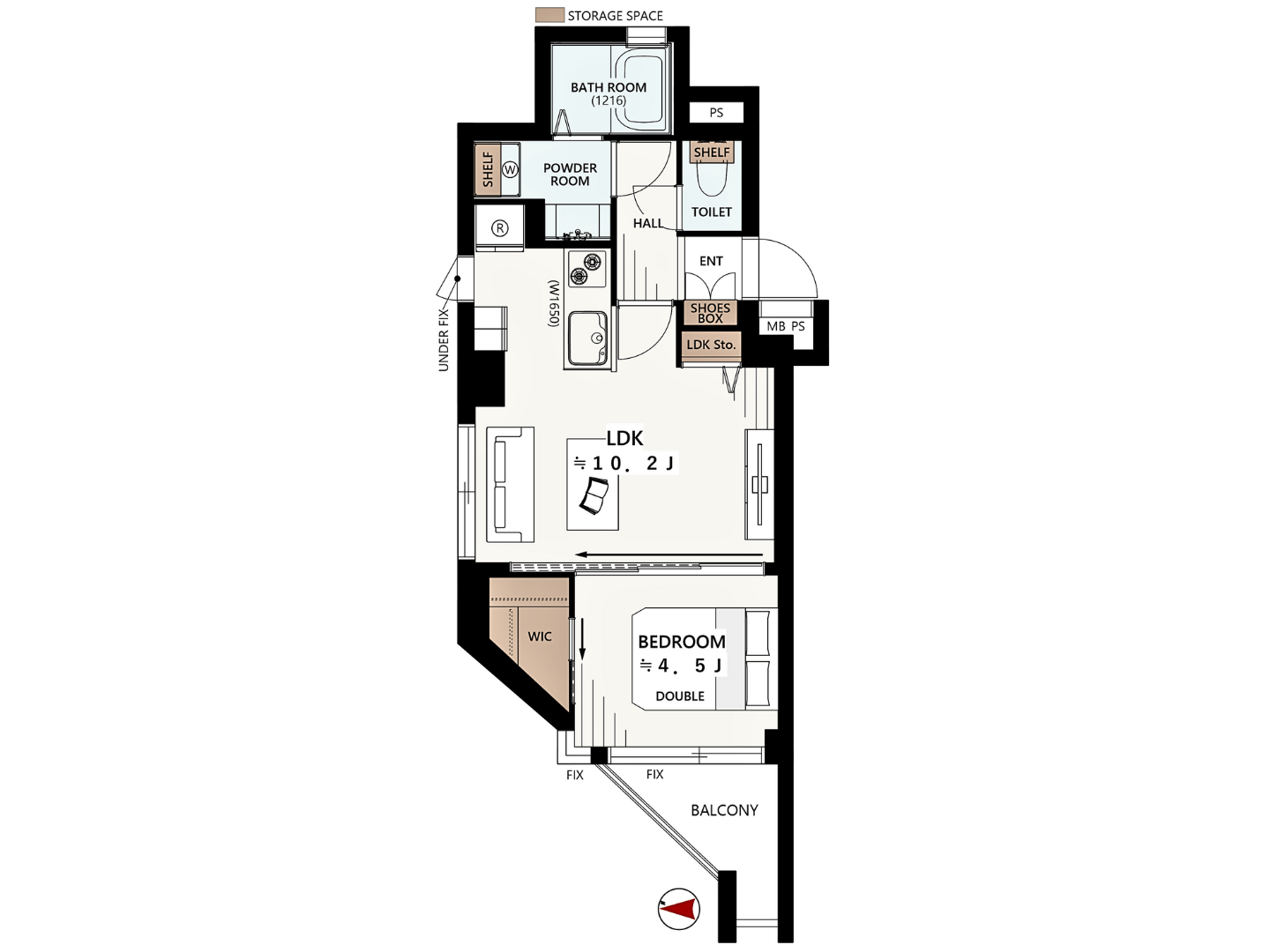- 1LDK+W Wはウォークインクローゼット
